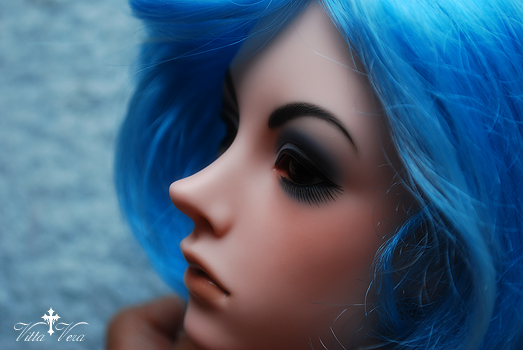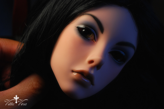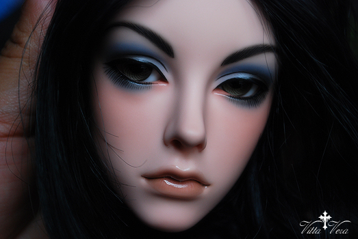Name: Bella Type: Soom Mecha Angel Bellatrix Notes: Owner wanted tapered, arched black brows, semi-sheer light brown lips, cobalt smoky eye and natural flush; no eyelashes requested Back.